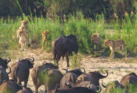 Unexpected Wildlife Encounter as Buffalo Herd Confront Lions
