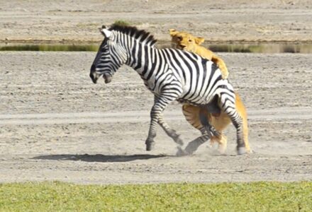 The successful hunt was witnessed by Francis Kijazi, who had spied the lioness and other members of her pride before the zebra became aware of their presence….