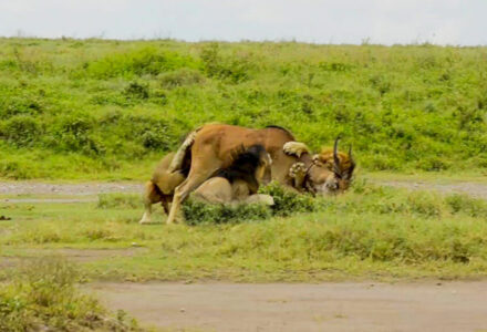 Baby Warthog Does the World’s Best Side Step Past Lions