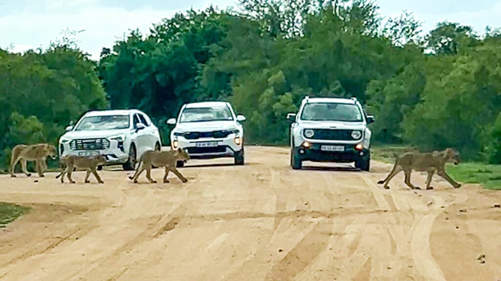 It’s one thing being held up in traffic or when your car is brought to a standstill at a zebra crossing. However, quite another when your reason for having to stop your car’s engine is a pride of lions.