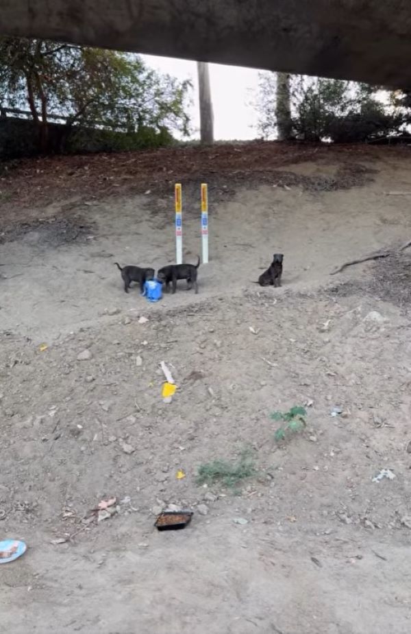 Among them were three frightened little pups named Pepper, Tuxedo, and Cole. They spent their days curled up under a freeway, pressed close together as cars roared above.