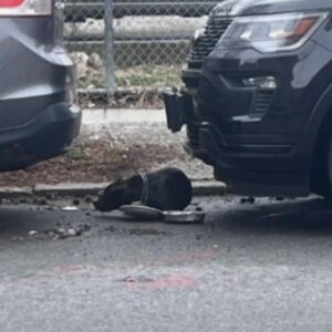 The rescuer then placed a leash on the dog and tried to help her up. She was transported in the car where she waited for him to take her into the clinic.
