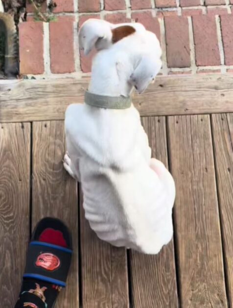 A frail Boxer puppy stood on their porch, his ribs protruding beneath a dull coat. His eyes, filled with desperation, seemed to plead for help.
