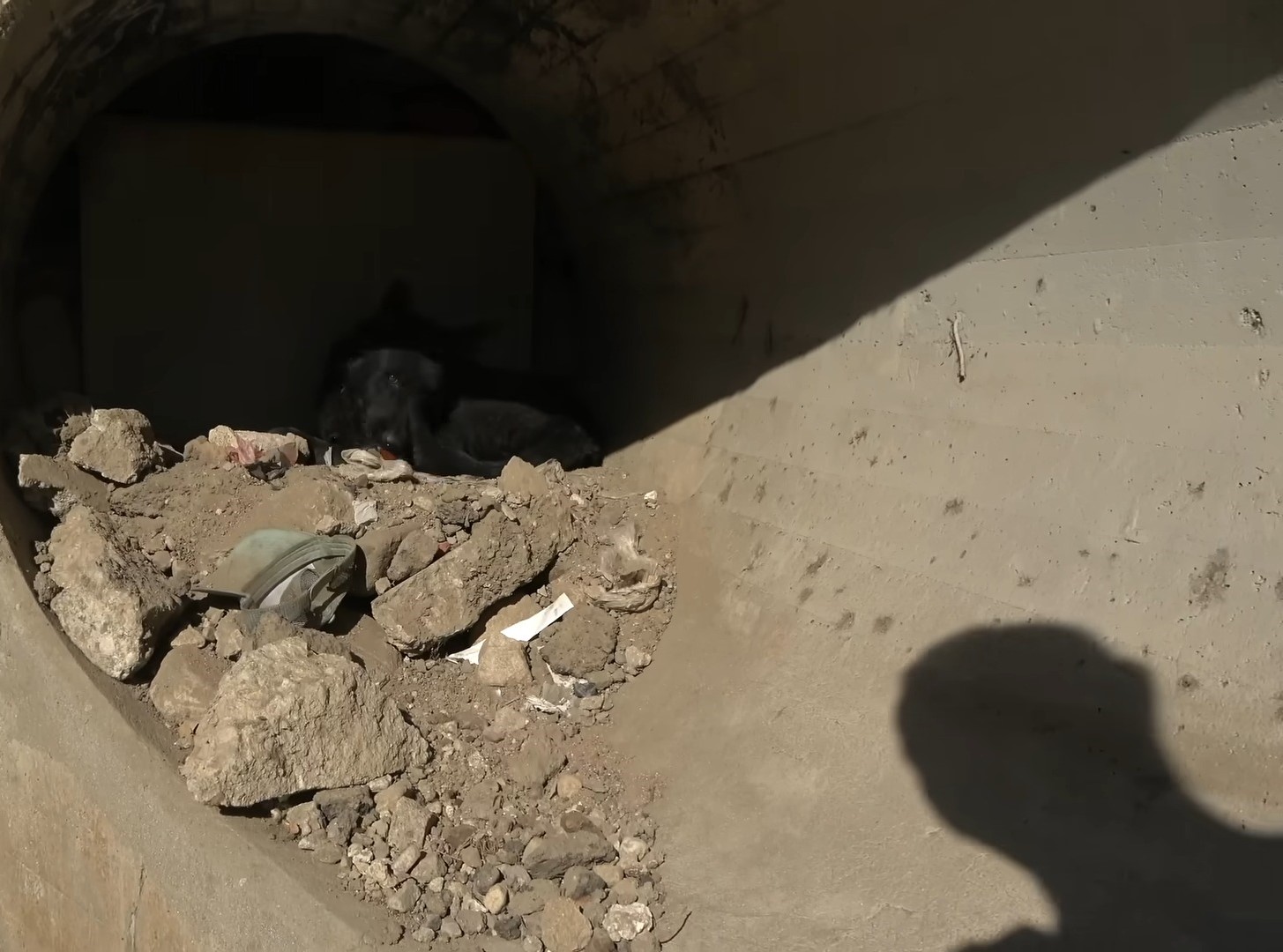 Once they arrived, the team scanned the canal until they finally spotted him. The dog was curled inside a small indentation in the concrete, looking weak and frightened.