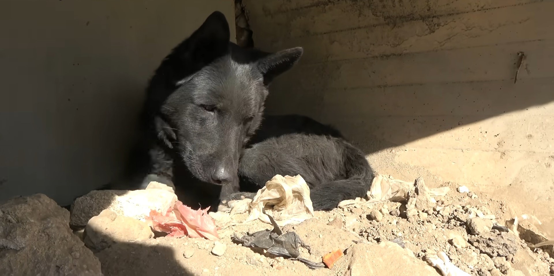 The team was amazed at how carefully the plan had worked. Fear still lingered behind the dog’s eyes, but hunger helped him take a chance on the humans helping him.