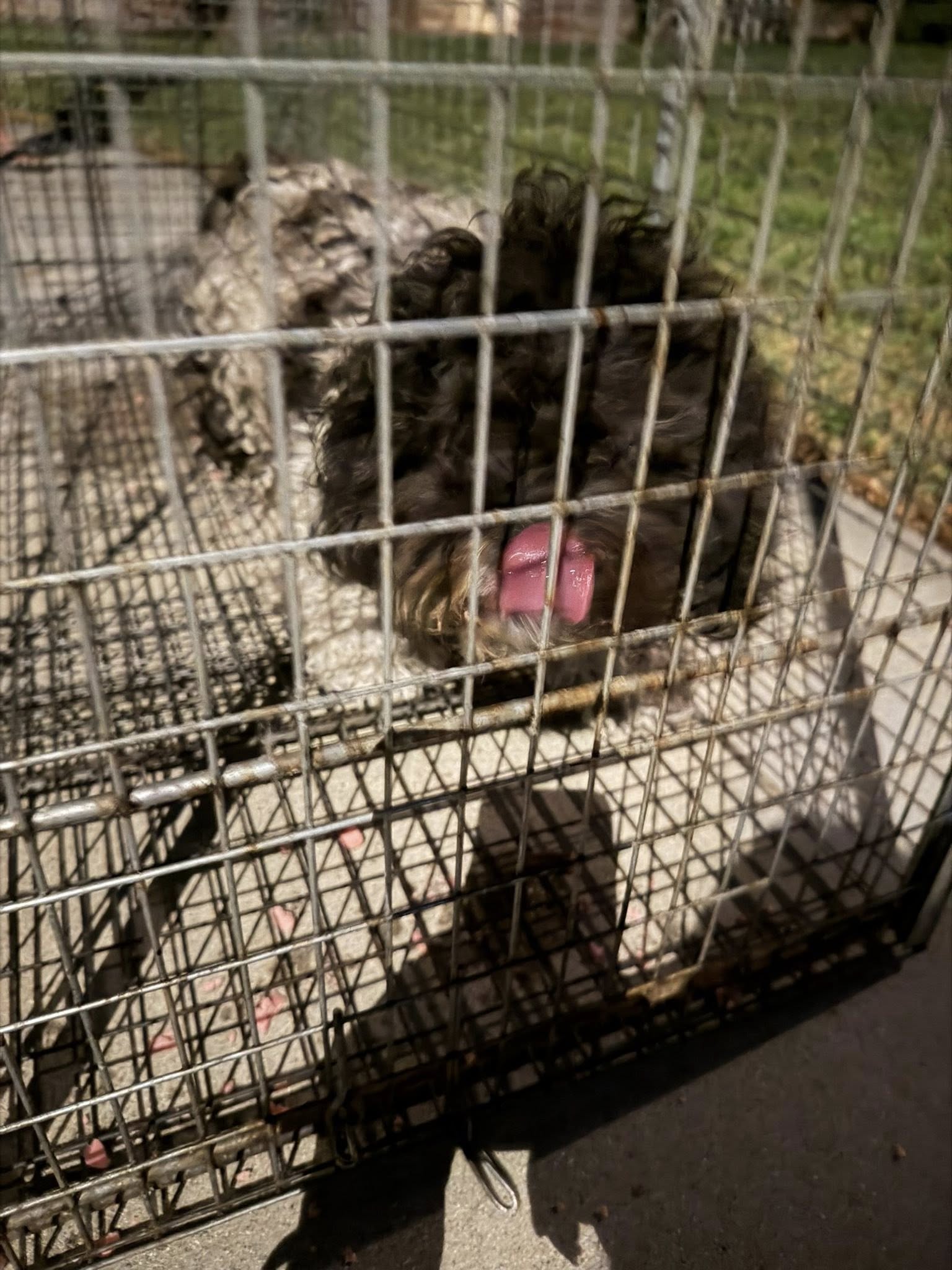 With night approaching and coyotes in the area, Hall knew she couldn’t leave her there. She set a humane trap with food inside, praying the hungry pup would step in.