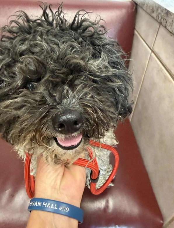 At the vet, the dog received a full checkup, a warm bath, and a much-needed trim.