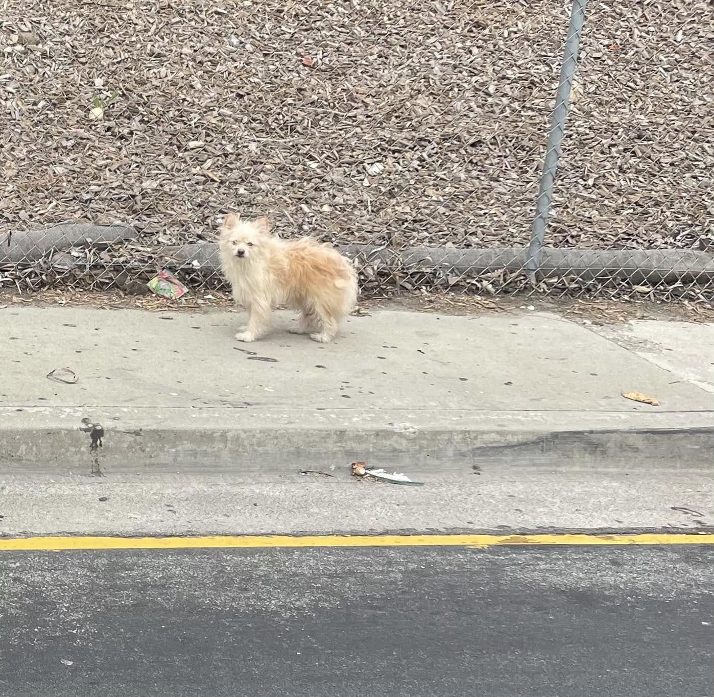 The freeway was packed with cars speeding past, and the frightened puppy was frozen in place. A nearby homeless man told them that ever since being abandoned, the dog had not moved from that spot, as if he was waiting for his family to return.