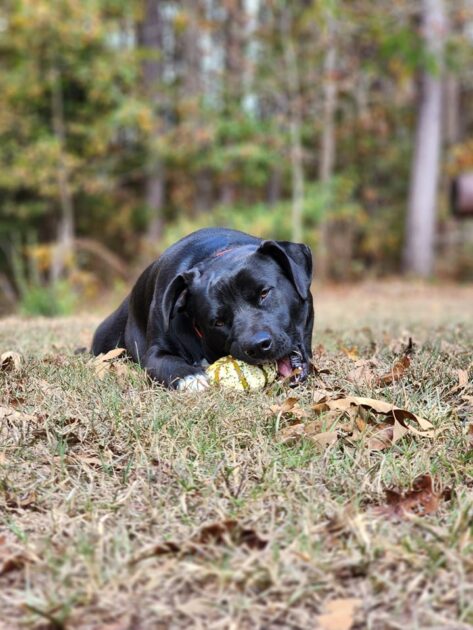 “Bronx is a very cautious dog, if anything is out of his normal routine it throws off his whole day. Rosie gets amped up when I encourage her to ‘get it’,” Cameron added.