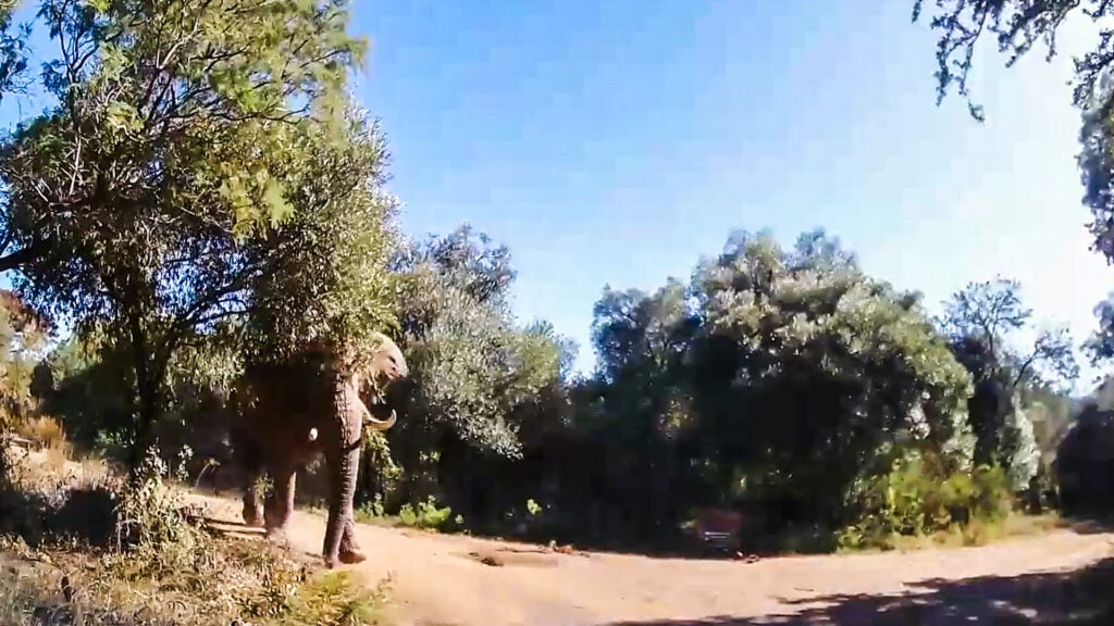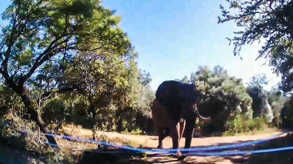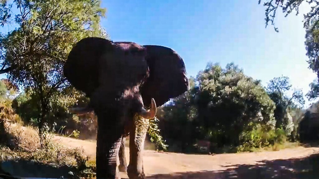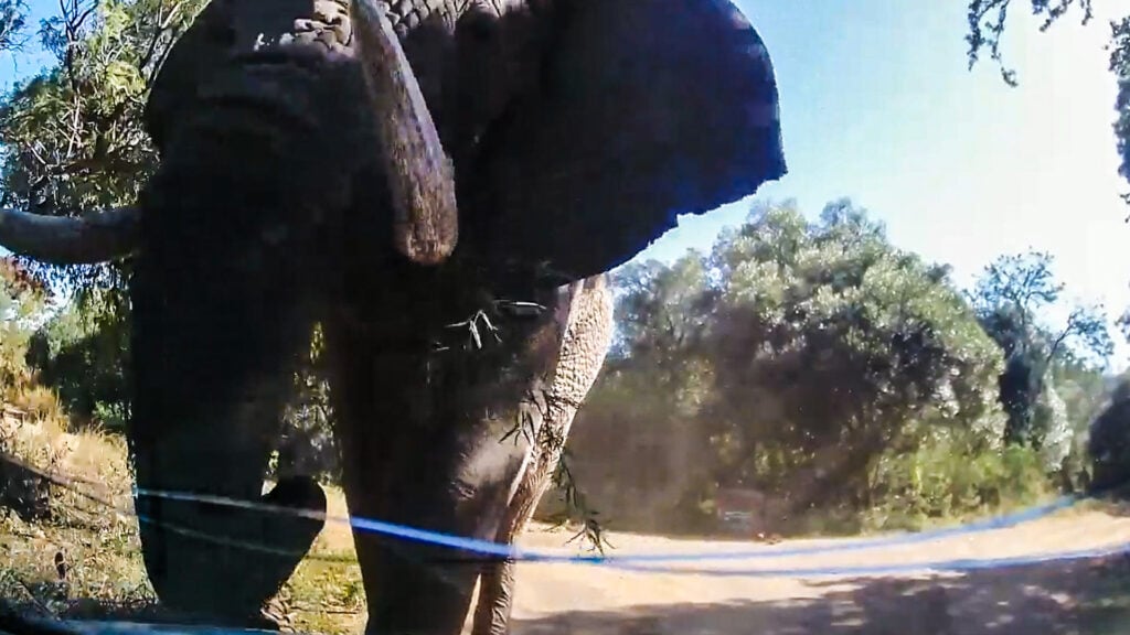 As we brace for impact, the elephant looms ever larger in the camera frame. With its ears flared to intimidate and tusks bearing down, it seems to be in the middle of a meltdown. Ominously, it makes no noise, as if this is an intentional ambush.