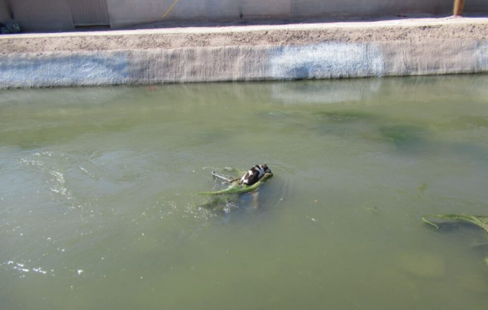 A ten year old Chihuahua mix found herself in a situation almost impossible to imagine, stuck on top of a shopping cart in the middle of an Arizona canal. Soaked through and exhausted, she clung to the only thing keeping her above the water.
