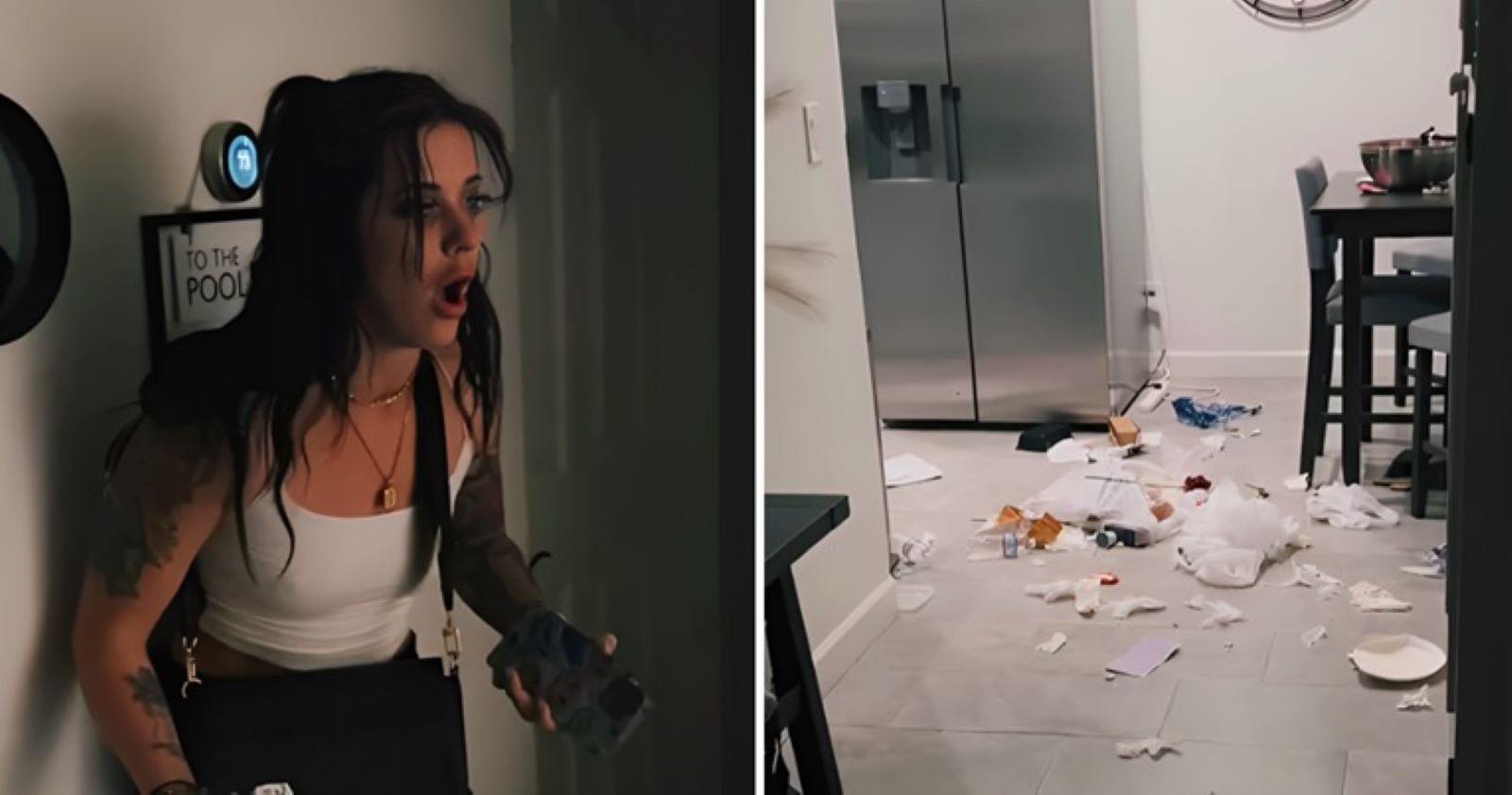 At first glance, the situation seemed manageable. She spotted only a few chewed-up scraps of trash in the hallway and bent down to pick them up.