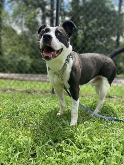 This loving Pittie mix checks every box you could hope for in a best friend. He’s gentle and playful, hardly ever barks, absolutely adores people, and is more than ready to shower affection on anyone willing to give him a chance.