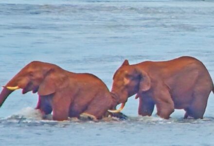 Elephant Takes a Rival’s Tusk in His Butt