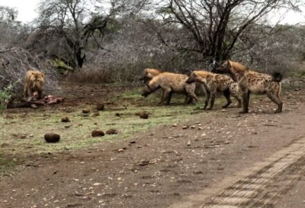 Lions And Hyenas Battle Over Fresh Kill