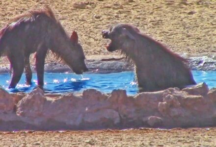Brown Hyenas In Tense Desert Standoff