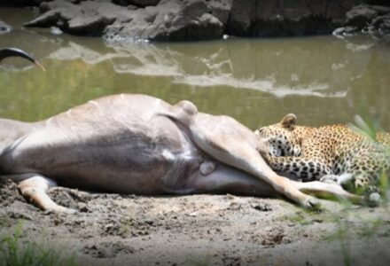 Leopard Takes Down Kudu Bull Near Phelwana Bridge