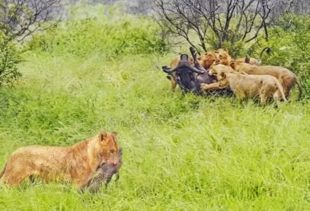 Lions Hunt Buffalo, Then Grab The Calf