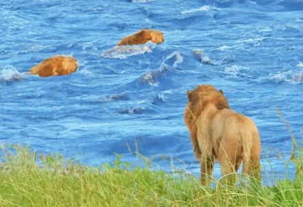 Lions Cross The Dangerous Masai River