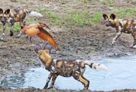 Wild Dogs Dizzy From Annoying Bird’s Tricks