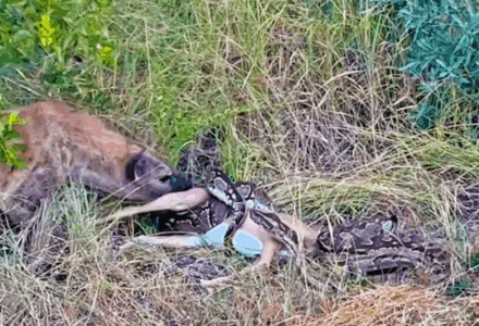 Python Fights Hyena Over Stolen Kill