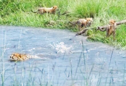 Cheetah Cubs Watch As Mother Gets Washed Away