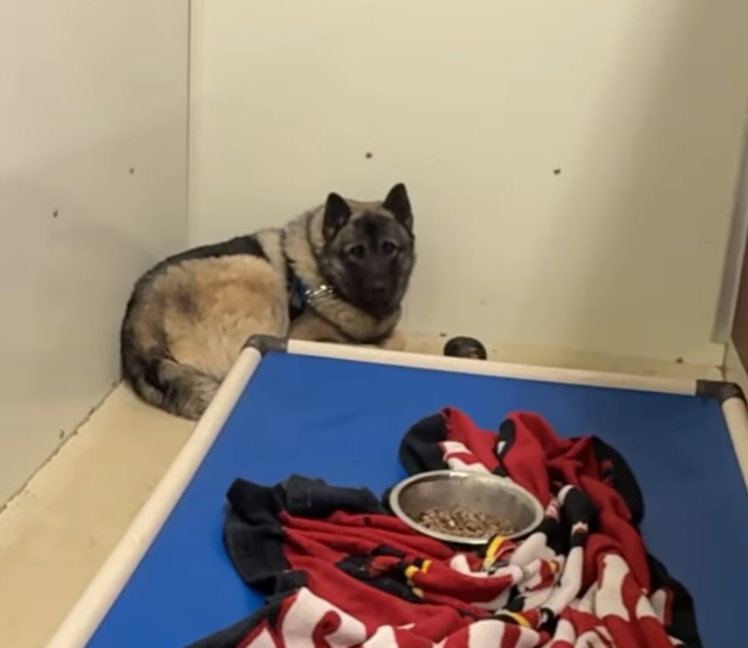 Bobby’s reaction inside the shelter was a devastating visual representation of his neglect. The rescue shared a heart-wrenching video online, showing the Norwegian Elkhound huddled and frozen in place at the back of his kennel, unable to understand his surroundings or who to trust.