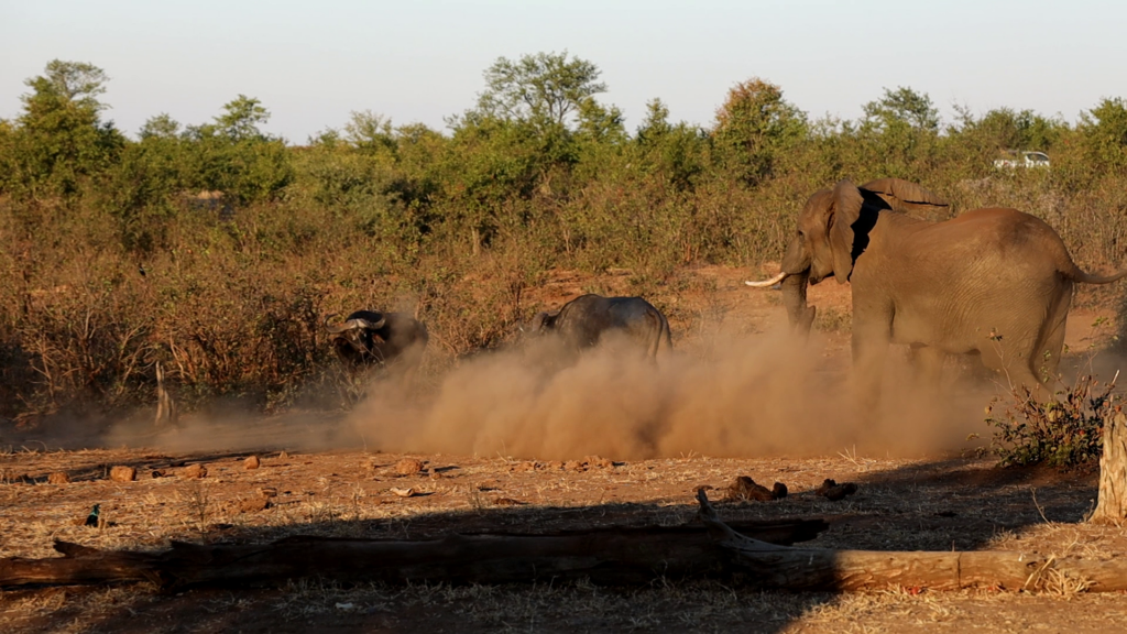 As the matriarch pressed home her warning, even buffalo uninvolved in the fracas moved off. While uncommon, elephants have been recorded killing buffalo, hippos, and rhinos that get on the wrong side of them.