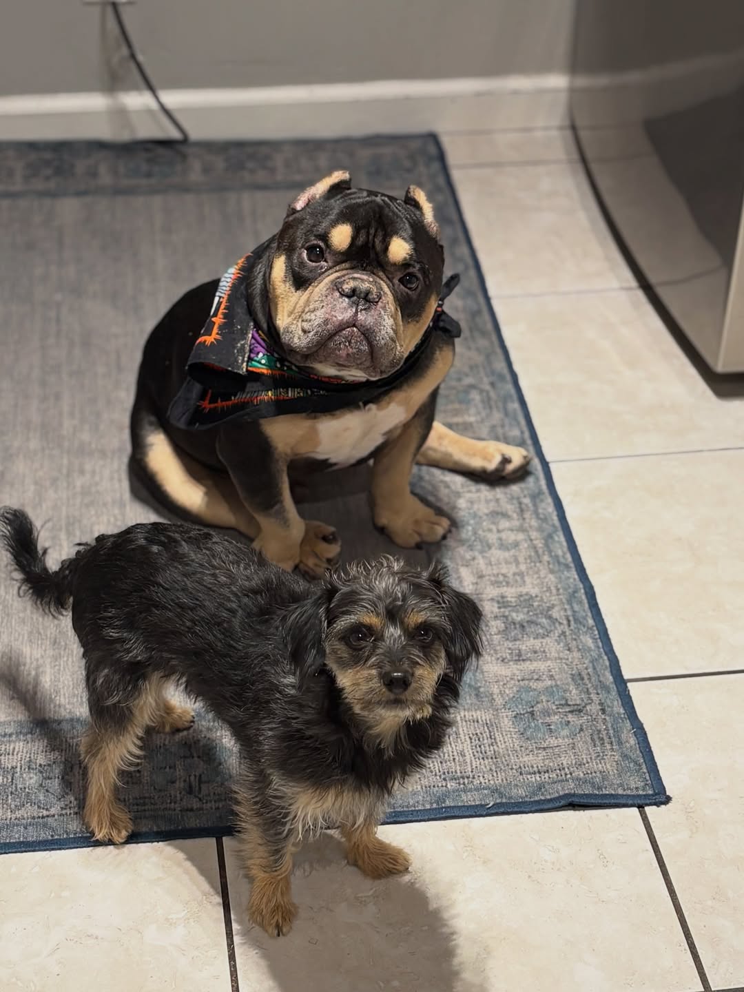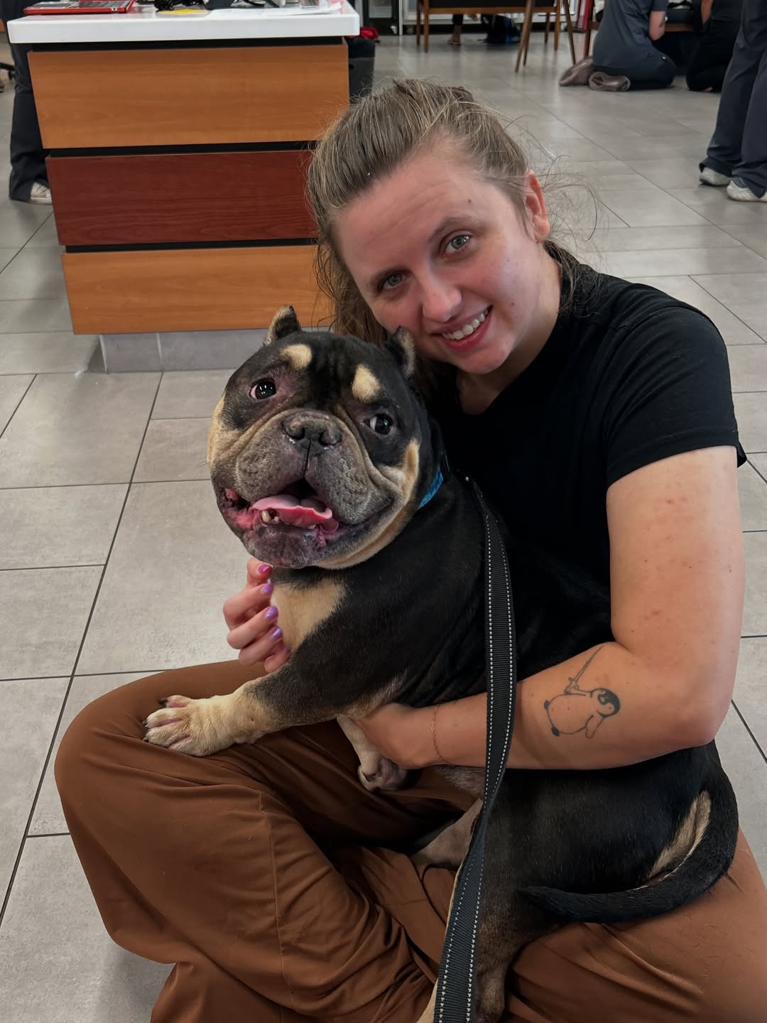 The pup, who turned out to be 93.6 % American Bully and 6.4% Bulldog, had mild arthritis, a sensitive stomach, and years of neglect behind him, had an unbroken spirit.