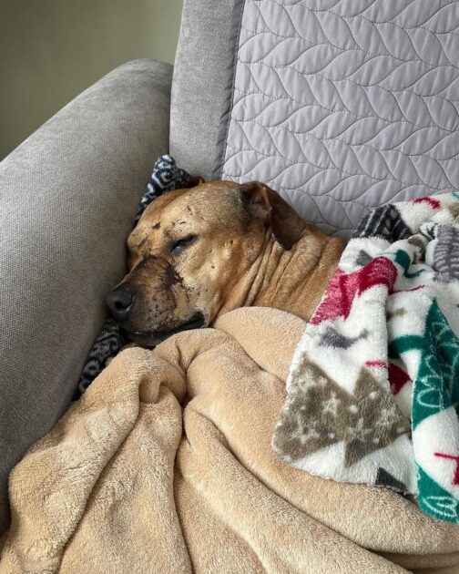 Now, Shmoo curls up on the couch with her new family, holds hands with her humans, and enjoys every moment of comfort. After so much uncertainty in her past, she finally found the peace she had been longing for.