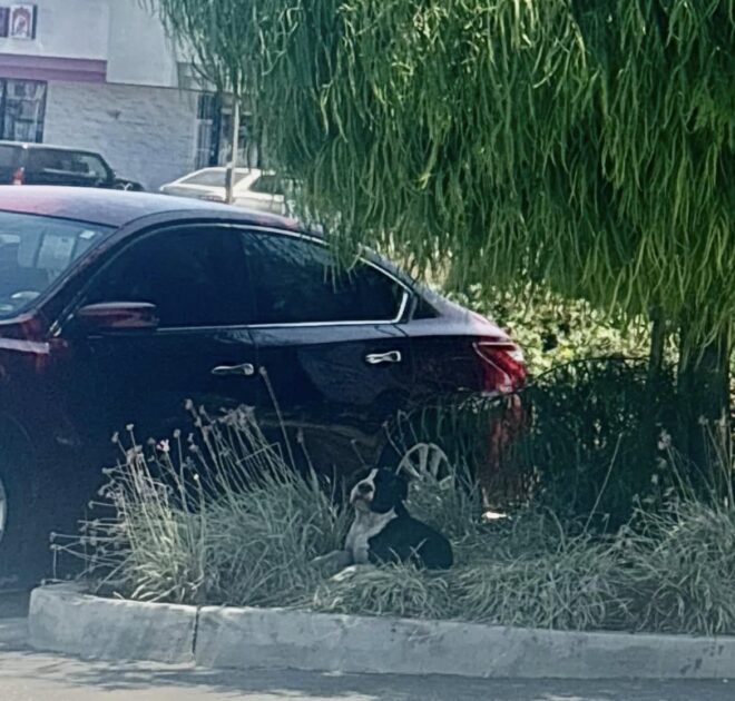 The dog limped across the mall parking lot, occasionally resting under a tree when his strength ran out, unaware that everything was about to change.