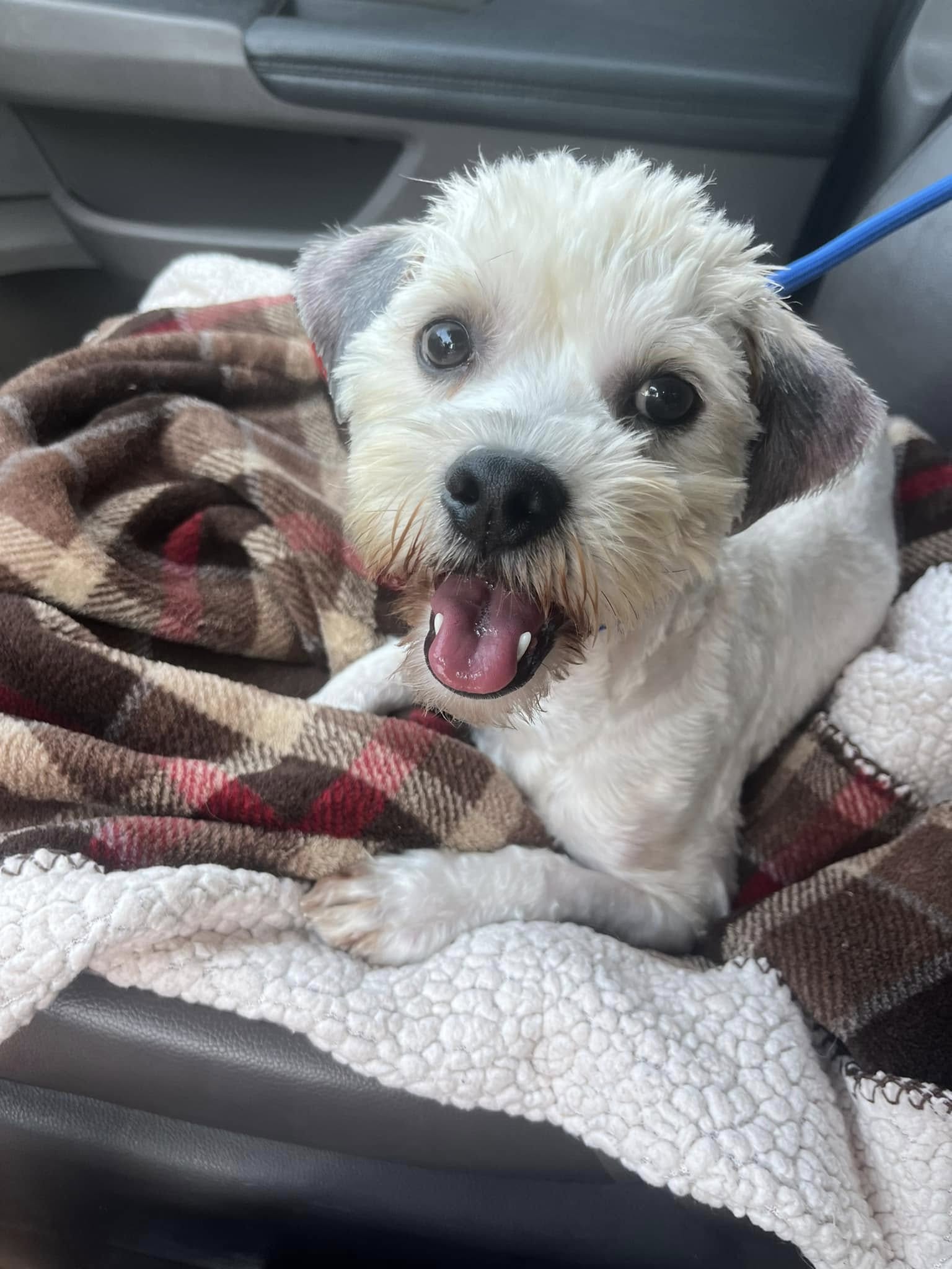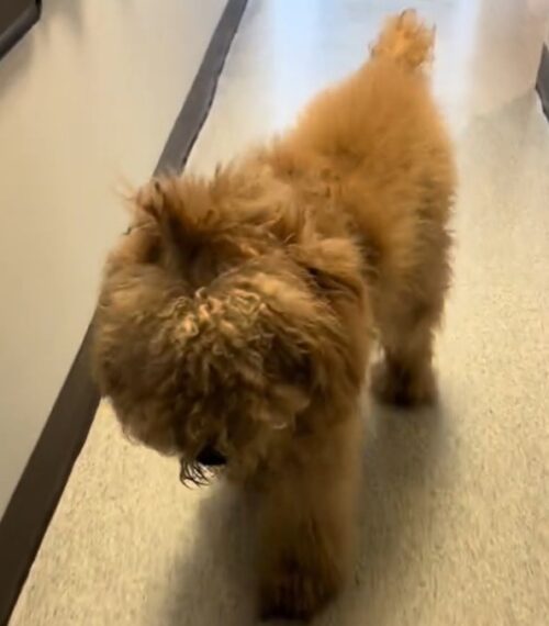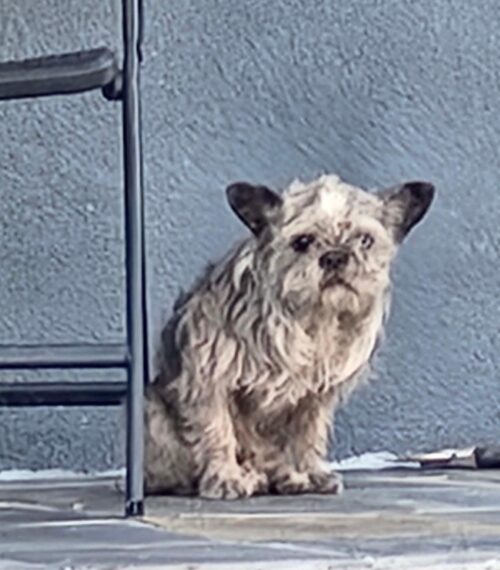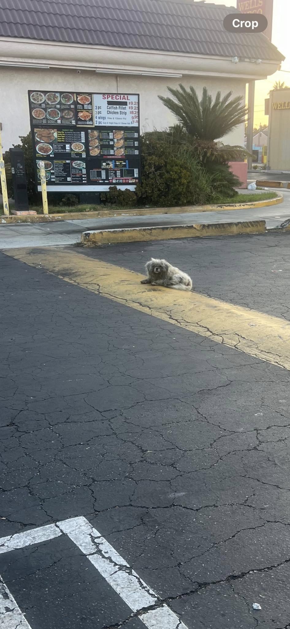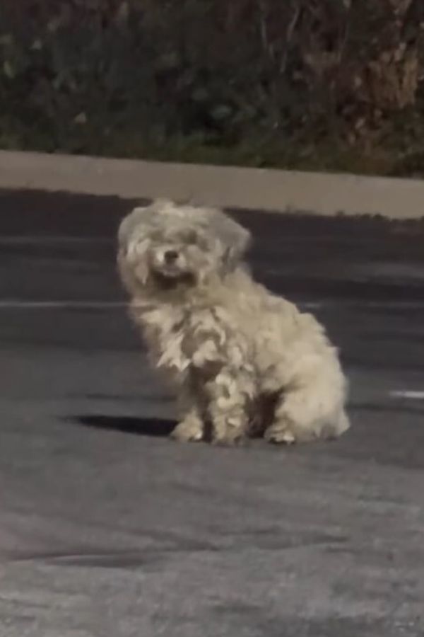 One day, a kind customer at their usual drive-thru spotted the little, matted dog resting quietly under a display screen.
