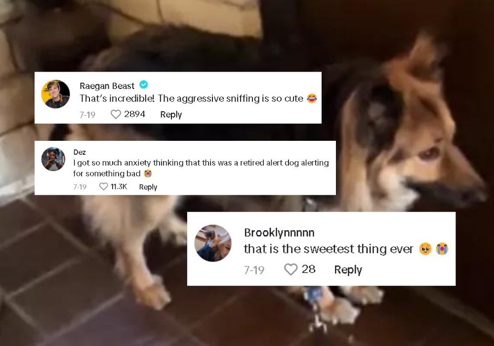 One viewer admitted they were worried at first: “I got so much anxiety thinking that this was a retired alert dog alerting for something bad 😭”