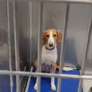 Inside, Max’s excitement grew. He barked, spun in circles, and sniffed with purpose. When the doors opened again, he bolted down the hallway and stopped at a specific apartment door, pawing at it urgently.