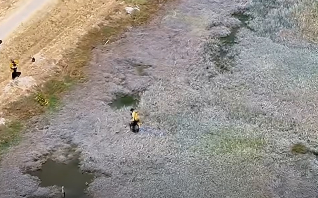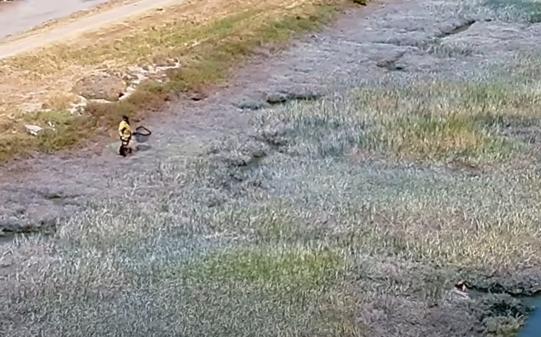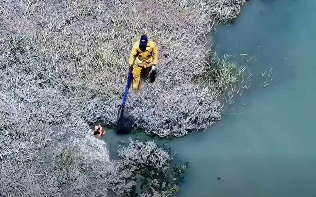 Fire captain Chris Clow examined the area with his drone, and he was able to find the struggling animal. They got close and realized that it was actually a dog.