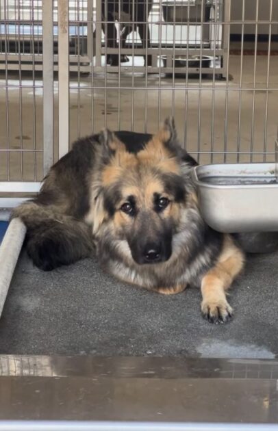 Day after day, the German Shepherd curled tightly into a corner, trembling without pause.