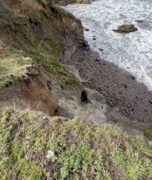 When he looked again, he realized it was a cow, trapped and drained of energy. The animal had collapsed near the cliffside and was completely unable to make the climb back up.