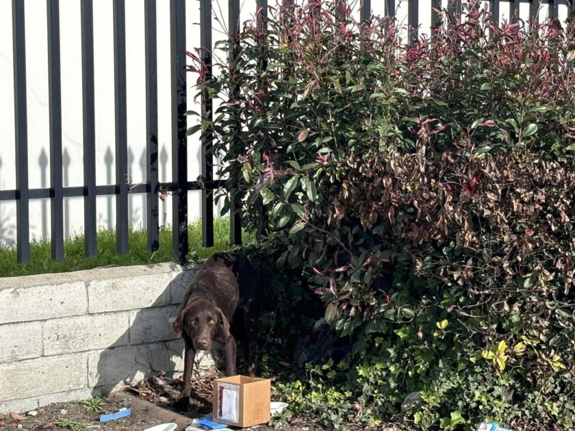 “On the busiest street in Compton. Hiding in bushes. Dumped after having her puppies.