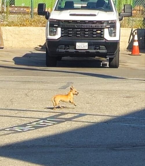 The man had never seen the little dog before. Curious and concerned, he walked toward her carefully.