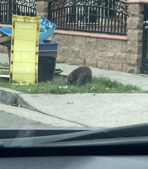 The caption read: “POV [point of view]: you were left tied to a pole in the pouring rain at the shelter …”