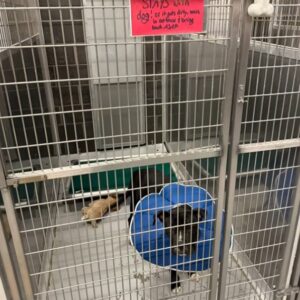 The mother dog, later named Honey, was in terrible condition—underweight, covered in fleas and ticks, and suffering from an old hip injury that caused her to limp. Gwinn and her team suspected that Honey had been kept outside for most of her life and likely used for breeding.