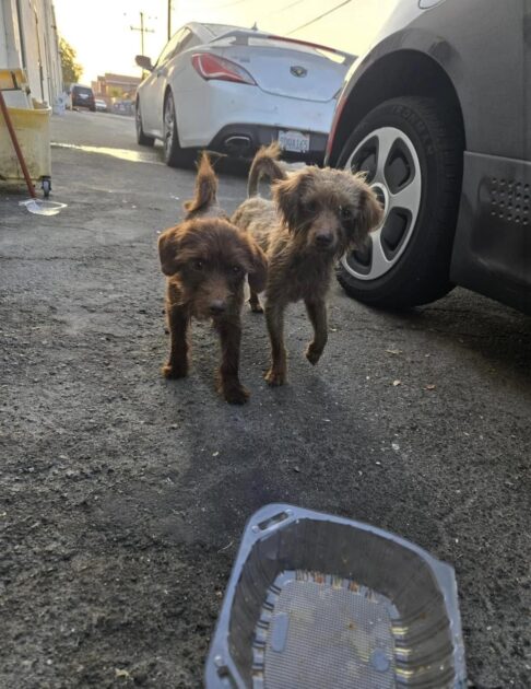 When Hall arrived, relief washed over her as she spotted the two pups huddled together behind the mall. Though frightened, they clung to each other, their bond giving them strength.