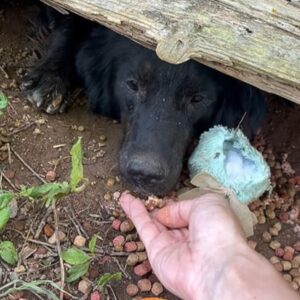 The rescue still wasn’t easy. The dog remained extremely skittish. She would peek out from the bushes, then dart back at the slightest noise or movement, but Suzette and Lorena stayed calm and patient. They believed Sunday would be the day.