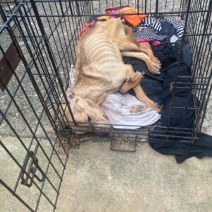 While she enjoyed the meal, one of the team members fetched a travel kennel from the car. With care and patience, they guided her inside and prepared to take her to safety.