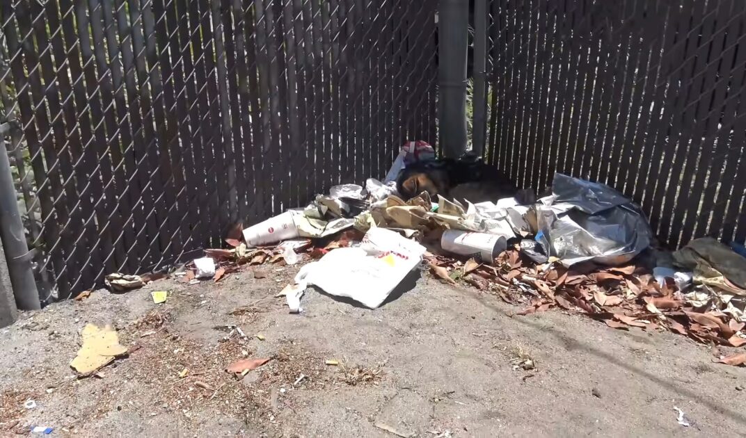 This is the story of a gentle dog in California, found resting quietly on top of a pile of discarded trash, lying there in silence as if waiting for a small sign of kindness.