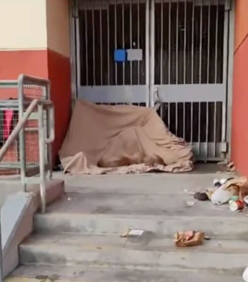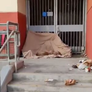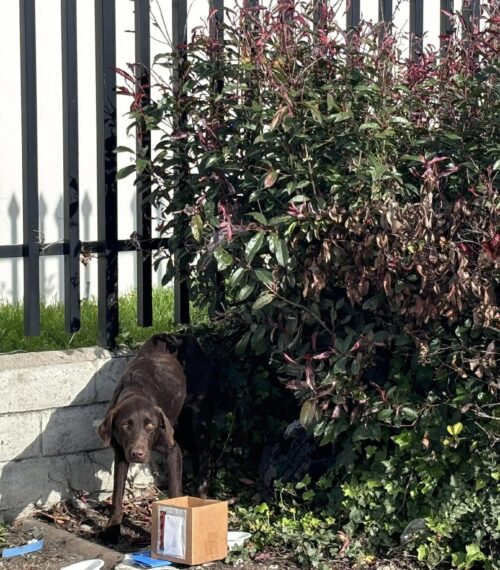 California Stray Pup Trembles Behind A School After The Earthquake And Braces For What Comes Next