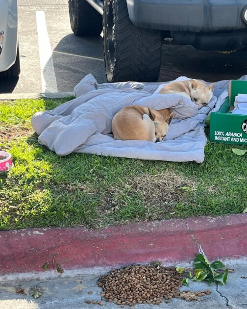 Despite their fear, the dogs stayed in the same spot for days. Touched by their plight, the community left food and water nearby in the hopes that they would find the strength to eat.