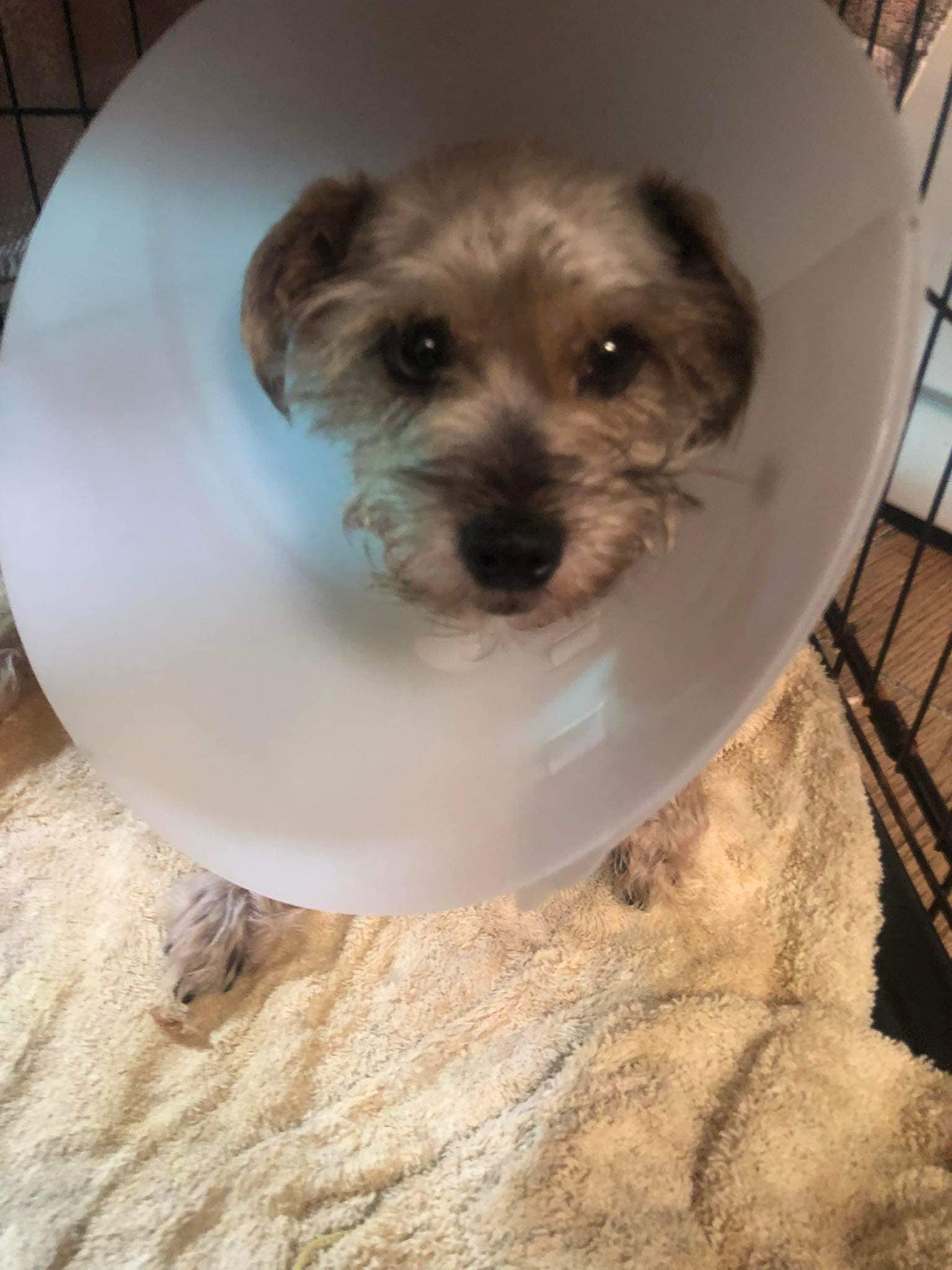 “He was hit by a car and the lady kept going. He rolled 7 times. When I picked him up I held him in my lap and he cried the whole way to my vet,” Hall wrote on Facebook.