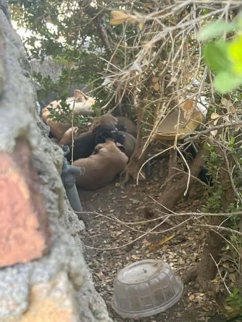 She followed the noise and stopped in her tracks when she saw what was tucked beside the plants. Five tiny puppies were pressed tightly together, trying to stay warm and stay quiet.