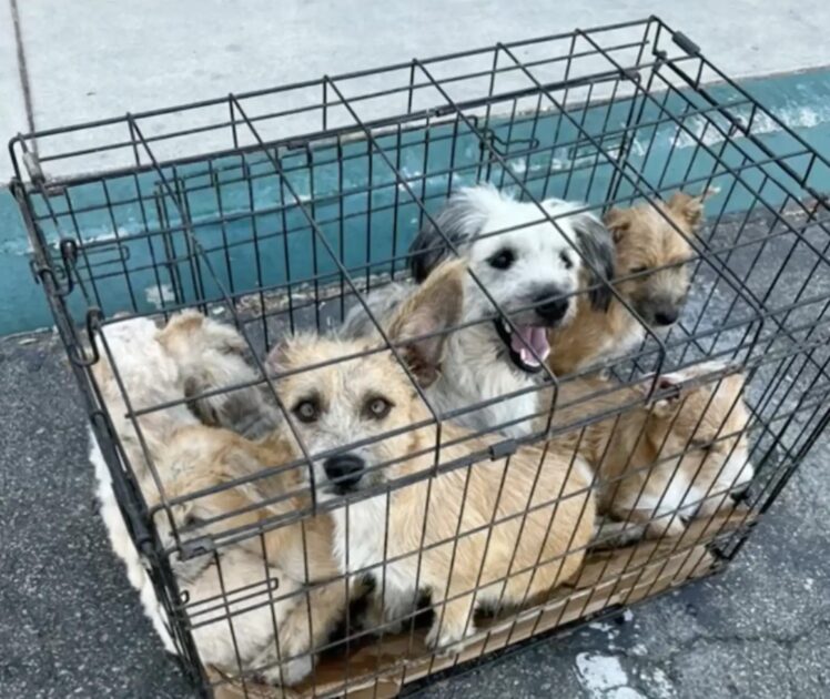 Just outside a rescue center in Chino Hills, California, she spotted a cramped cage holding seven neglected dogs.